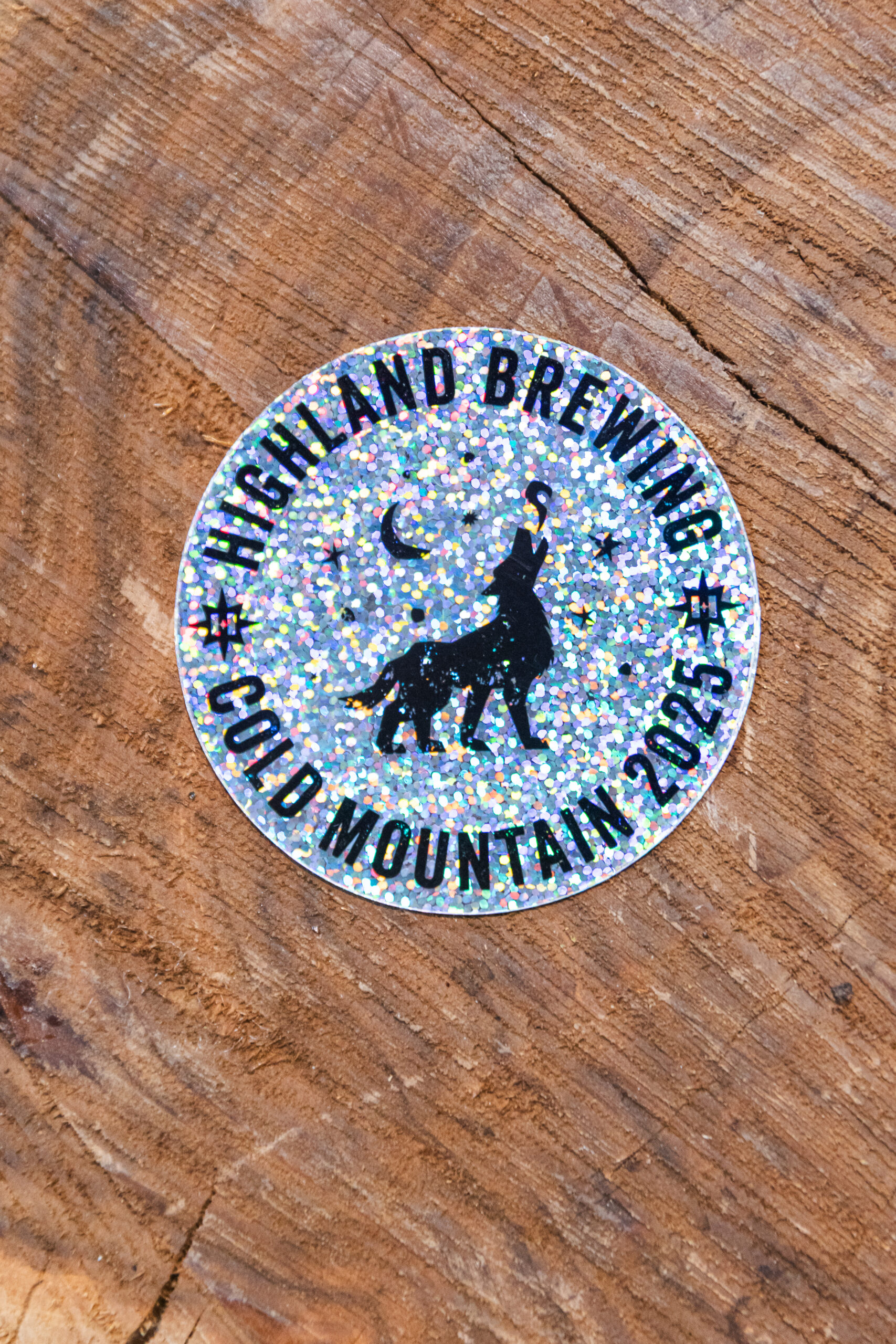 Glitter sticker with the 2025 Cold Mountain Wolf logo.